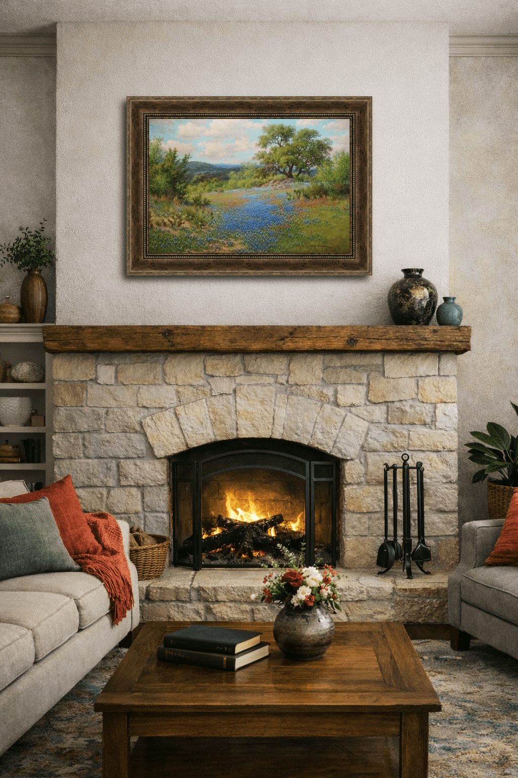 A Texas bluebonnet landscape giclée, Interwoven Harmonies, features bluebonnets and Indian paintbrush blending into a soft harmony of color in this fine art reproduction by William Hagerman. This open‑edition print is available as a canvas giclée or poster and is sure to make a beautiful statement in your home.